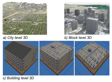 - Collect, discover and process various geo-referenced information sources such as GIS (geographical information system) data, 2-D/3-D graphics and imageries, and various user inputs/observations for generating 3-D models for urban areas infrastructures
